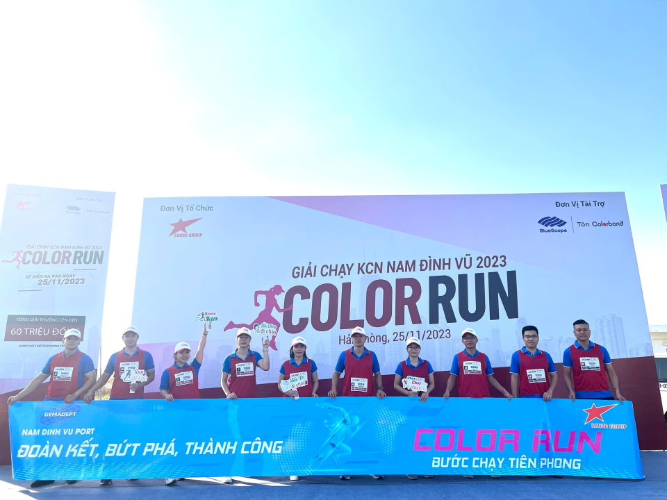 Hưởng ứng phong trào chạy bộ thường niên của KCN Nam Đình Vũ, ngày 25/11/2023, CBNV Cảng Nam Đình Vũ đã tham gia giải chạy COLOR RUN 2023 do Tập đoàn Sao Đỏ tổ chức.