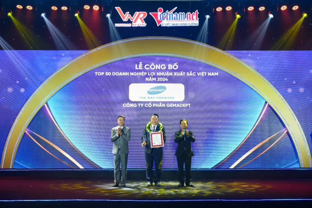 Gemadept Corporation (Stock code: GMD – HoSE) was honored in the “Top 50 Most Profitable Enterprises in Vietnam in 2024” organized by Vietnam Report in collaboration with VietNamNet Newspaper. The event attracted hundreds of leading enterprises nationwide.