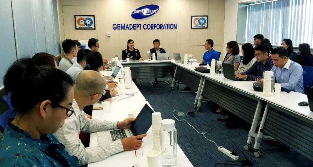 On 7 February 2020, right in the first working week after Tet holidays, at the Head-office of Gemadept Corporation (GMD), representatives of the Board of Directors and the Investor Relations Department of the Company welcomed more than twenty representatives of investment funds and securities companies to learn about GMD's business activities and development strategy while seeking for opportunities of cooperation and investment.