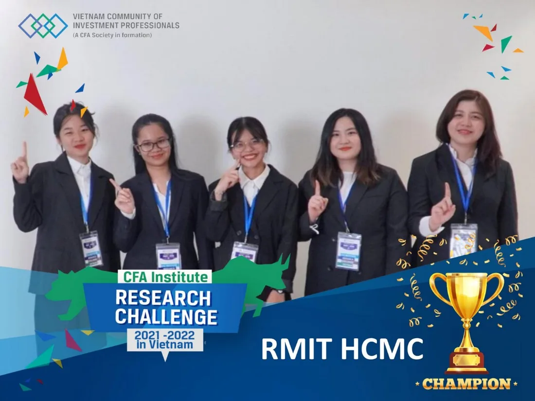 Ngày 20/03/2022, Đội thi ĐH RMIT TP. HCM – Quán quân vòng thi Quốc gia cuộc thi CFA Institution Research 2021-2022 đã đại diện Việt Nam tranh tài với các đội thi đến từ các trường đại học hàng đầu trong khu vực bao gồm: