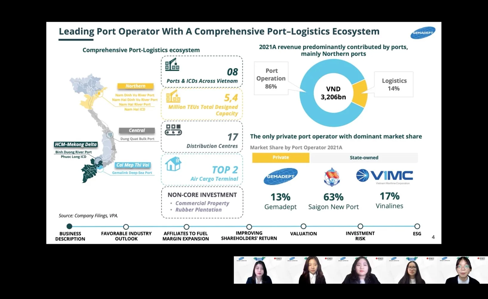 Sau hơn 3 tháng tranh tài sôi nổi, vượt qua hơn 100 sinh viên ưu tú của 19 trường đại học danh tiếng, 4 đội xuất sắc nhất đến từ trường Đại học Ngoại Thương Hà Nội, Đại học RMIT thành phố Hồ Chí Minh, Học Viện Ngân Hàng, Đại học Ngoại Thương thành phố Hồ Chí Minh đã tiếp tục thi đấu trong vòng chung kết ngày 15/01/2022. Nhiệm vụ của các thí sinh là nghiên cứu, phân tích và đưa ra các nhận định, đề xuất đầu tư đối với Công ty Cổ phần Germadept – Công ty Chủ đề của năm nay, là doanh nghiệp đại diện hàng đầu trong lĩnh vực kinh doanh Khai thác Cảng và Logistics tại Việt Nam.