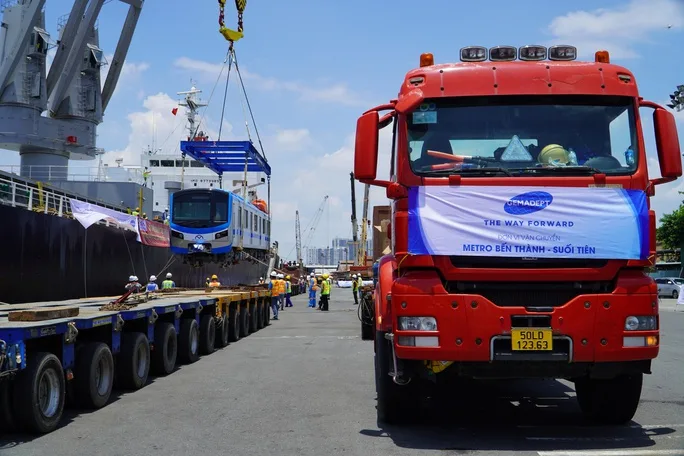 Với các phương án đã được chuẩn bị trước rất kỹ lưỡng, nên ngay sau khi tàu vận chuyển toa tàu vừa cập cảng, toa tàu đầu tiên đã được tổ chức điều phối để nhanh chóng xếp xuống đoàn xe siêu trường siêu trọng của Gemadept- Nhà thầu vận chuyển cho dự án Metro số 1. Tiếp tục trong chiều ngày 6/5, toàn bộ 6 toa tàu nhập về đợt này sẽ được tập kết trên các thiết bị chuyên chở của Gemadept, sẵn sàng để lực lượng an ninh cảng làm công tác thông quan. Theo kế hoạch, từ 0h ngày 6/5 đến rạng sáng ngày 7/5, đoàn tàu 3 toa thứ nhất sẽ được vận chuyển về depot Long Bình (Thành phố Thủ Đức). Đoàn tàu còn lại tiếp tục được vận chuyển vào ngày 8/5.
