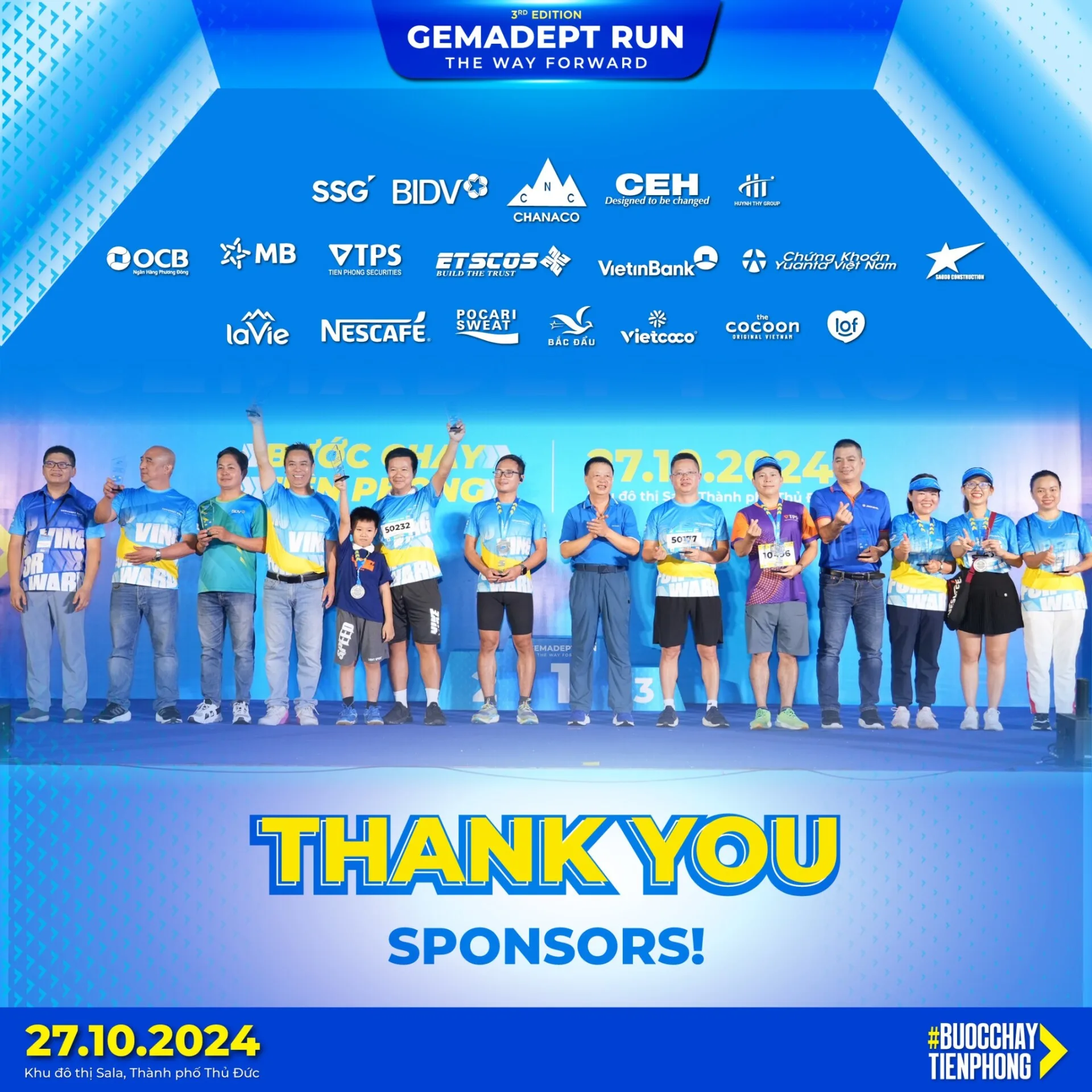 Gemadept xin chân thành cảm ơn sự đồng hành của các Doanh nghiệp Tài trợ, Quý Đối tác, Khách hàng… đã góp phần làm nên một mùa giải Gemadept Run 2024 – BƯỚC CHẠY TIÊN PHONG thành công và ý nghĩa.